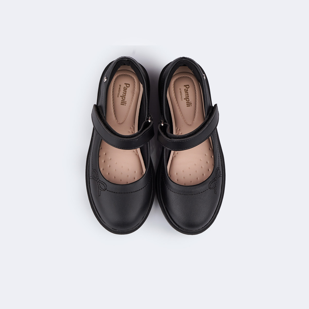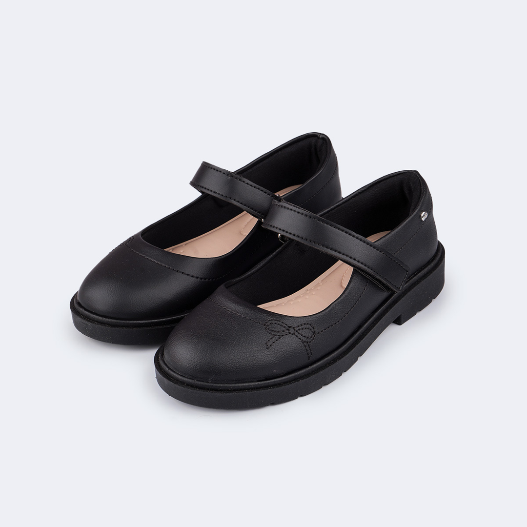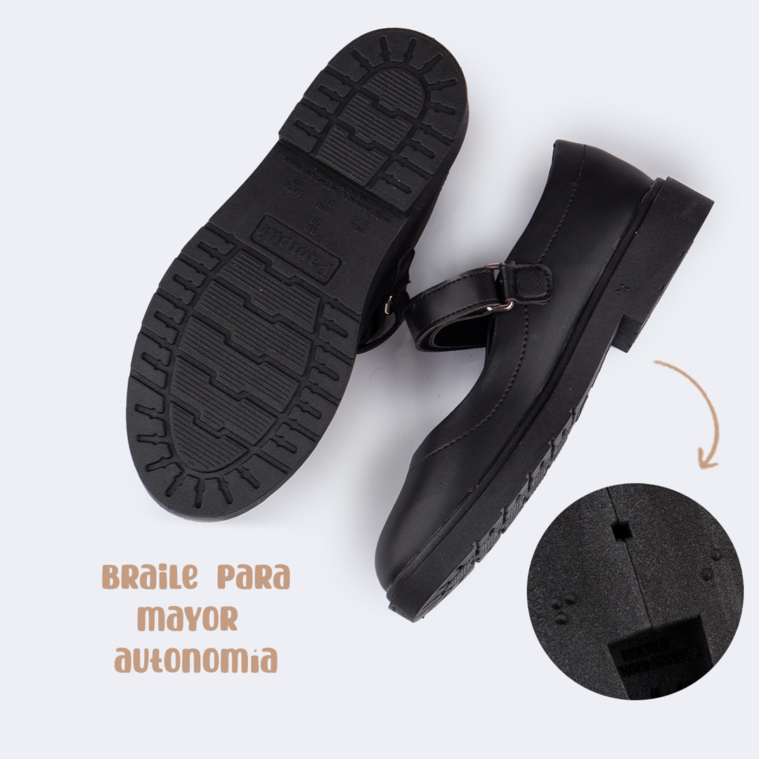 Bailarina escolar negra con correa. Clásica, cómoda y perfecta para el colegio. Diseñada para acompañar el día a día con estilo y resistencia.