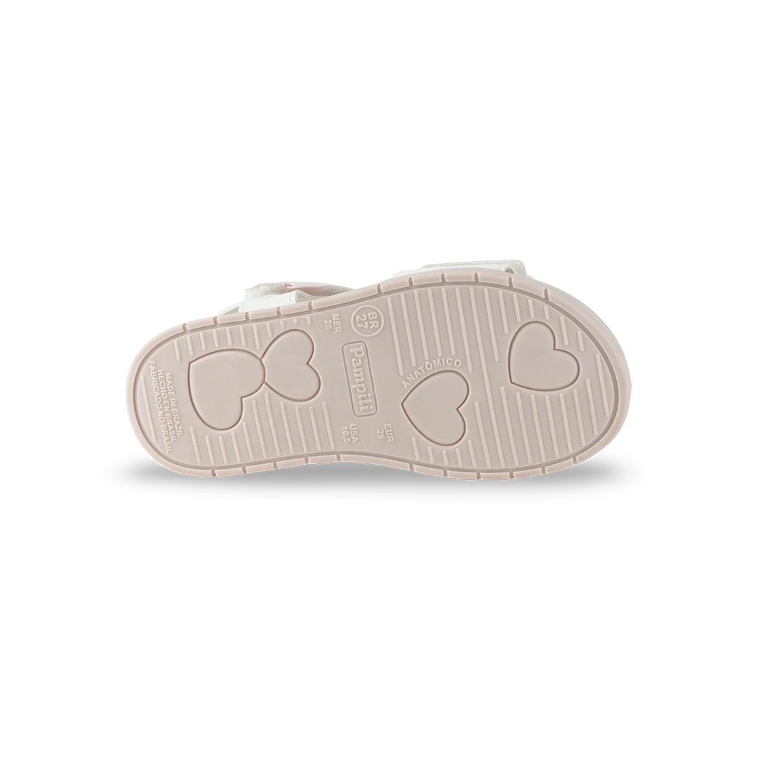 Cuenta con una plantilla anatómica de EVA con espuma para mayor comodidad al caminar. La sandalia para niñas tiene una suela de goma con tecnología TR Eco que toma en su composición un 20% de materias primas de fuentes renovables, brindando un rendimiento flexible y antideslizante, dando seguridad a los primeros pasos.