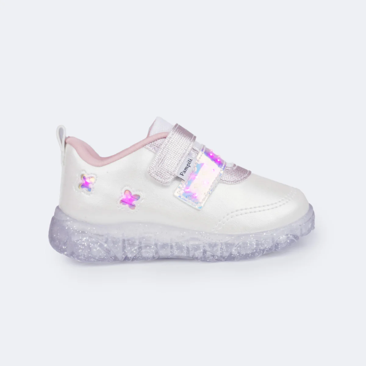 ¡Un sneaker que brilla con la energía y la alegría de las niñas! Este modelo de la línea Liz Luz es perfecto para los primeros pasos, aportando un toque mágico con luces LED de colores en las mariposas laterales y la cinta holográfica que atraviesa el piecito. Además del aspecto lúdico y encantador, la zapatilla proporciona ligereza, seguridad y practicidad en la vida cotidiana.