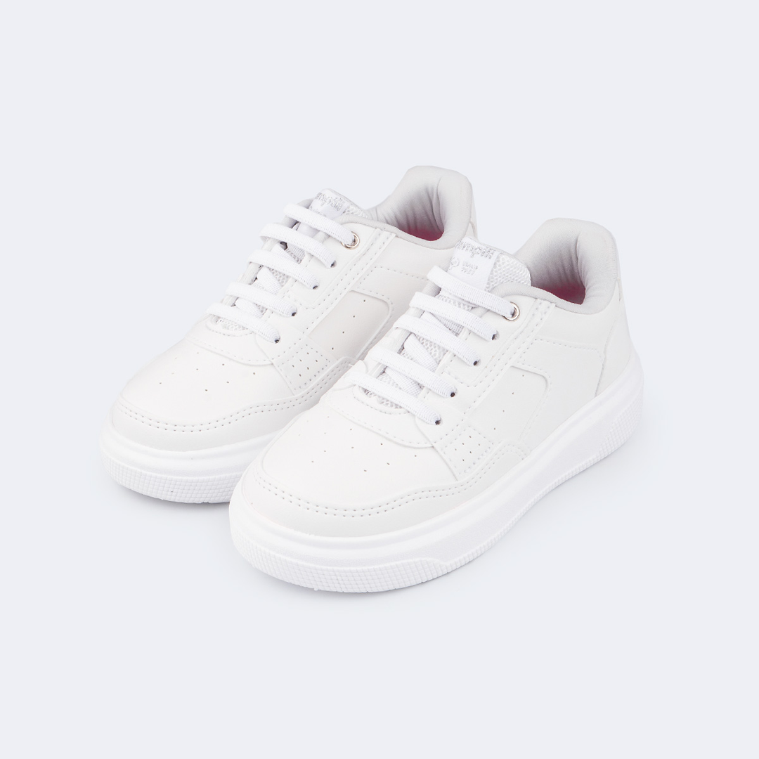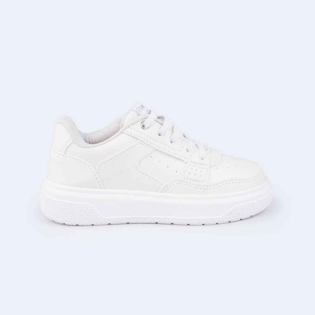 Sneakers blancos con cordones elásticos. Ligeros, cómodos y perfectos para el día a día . Ideales para correr, jugar y moverse sin parar.