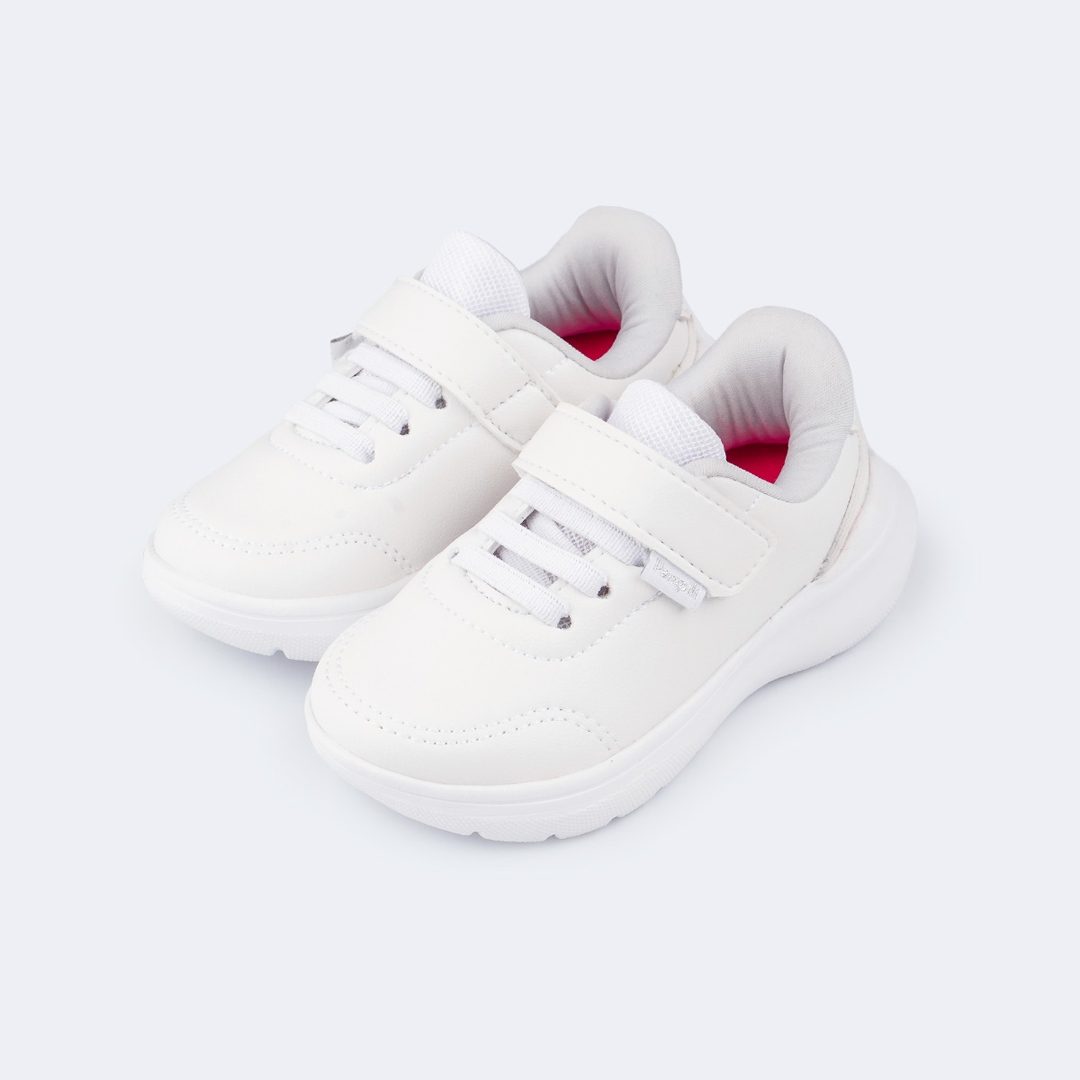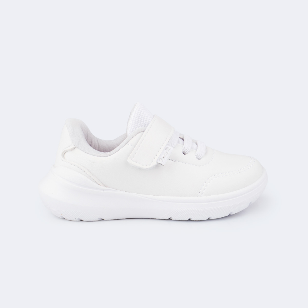 Sneakers blancos con velcro y cordones elásticos. Ligeros, cómodos y perfectos para el día a día . Ideales para correr, jugar y moverse sin parar.